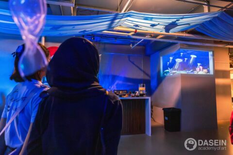 From 13 to 27 September 2024, Dasein Digital Media students from batch DDM221 presented the Aquatopia exhibition, merging art and technology to highlight crucial environmental concerns related to SDG 14: Life Below Water. The exhibit drew attention to the issues of jellyfish overpopulation and the detrimental effects of cigarette butt pollution on marine ecosystems, offering the audience a chance to engage with these themes through interactive and immersive experiences.